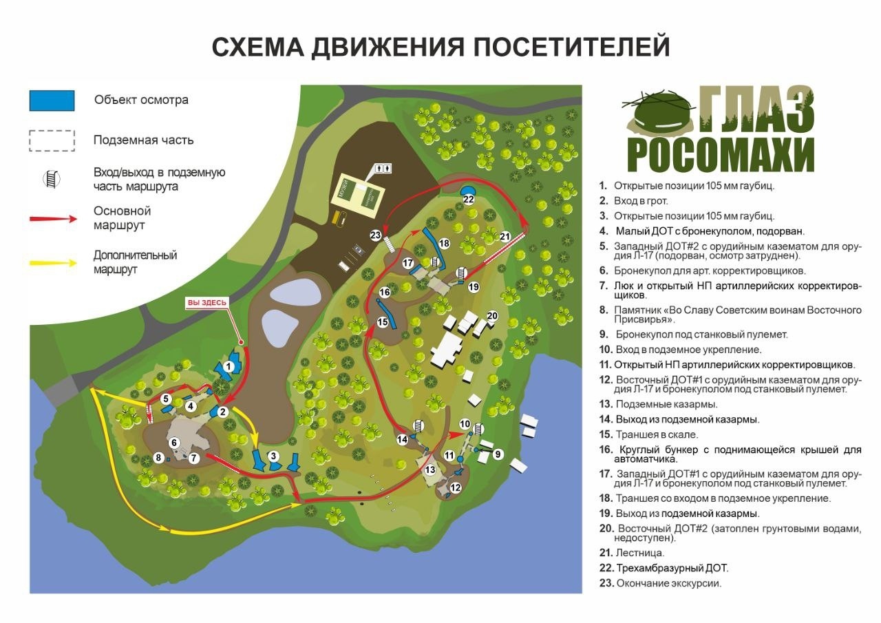 Рады вам сообщить, что с 2024 года ландшафтно-исторический комплекс «Глаз Росомахи» и «Музей оккупации и освобождения Карелии» работают в формате проведения экскурсий в будничные и выходные дни.